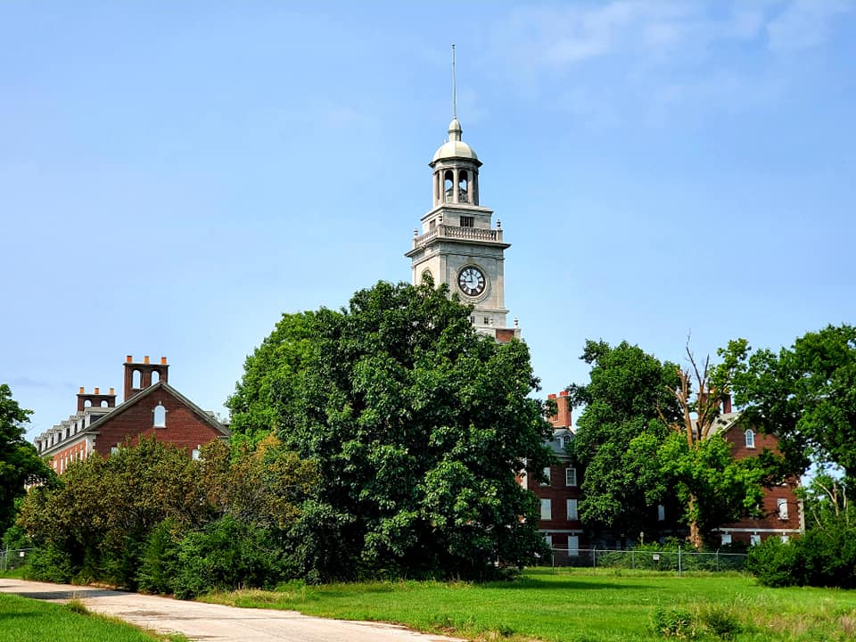 I walked a narrow road lined by trees and watched as the Menninger Clocktower emerged through wild growth.