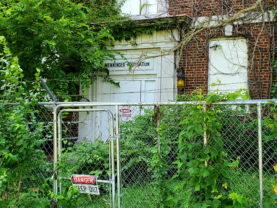 The Menninger Foundation left the clinic behind and moved their operation to Texas about twenty years ago. It has sat abandoned ever since. I followed an old road into the hills and passed a “no trespassing” sign on my way. A security guard from a nearby business noticed and approached me with some irritation. After I explained who I was and what I was doing, he gave me directions through the winding roads and to the clinic. Fortunately, Topekans have a long memory, and most of them have been inculcated with fond memories of the Menninger family. The security guard didn’t think twice about helping me out.