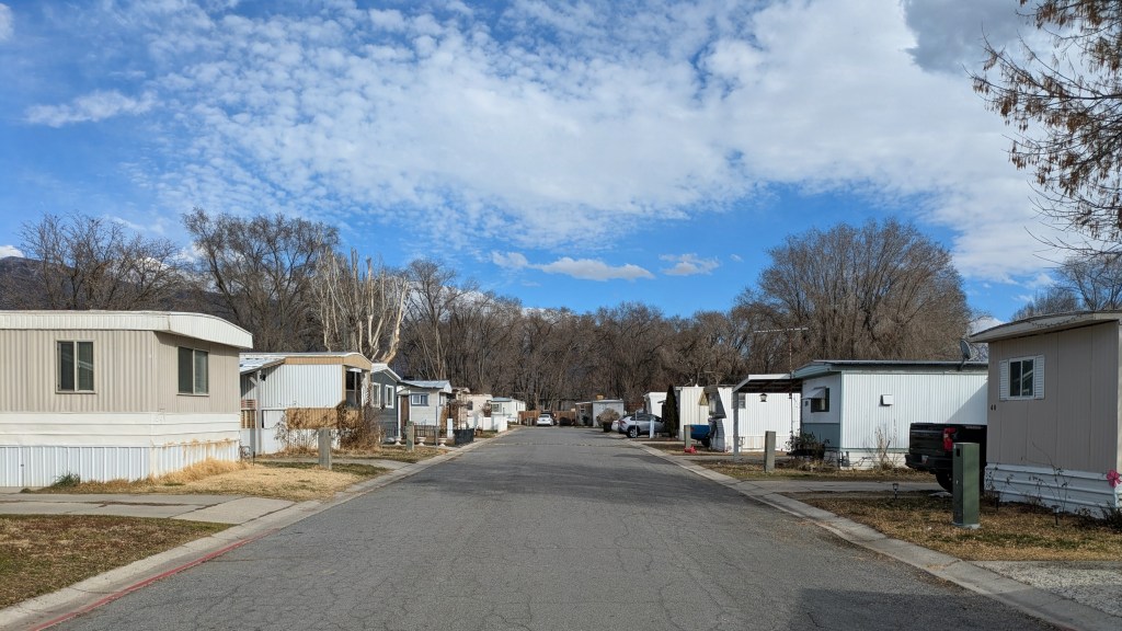 I turn off a road named “Freedom” and into a trailer park with old roads whose sound—a loose rattle of gravel—tugs at memory. The homes have had decades to settle into their plotted sequence of lots. They tilt with age and wear their fading collage of mismatched paint choices with worn out confidence. I drive slowly over a speed bump, followed by another, and reach for the knob that controls volume, letting rhythm dissolve into faint crackles.